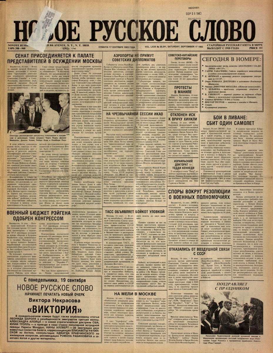 «Новое русское слово № 26241, 17 сентября 1983 года»