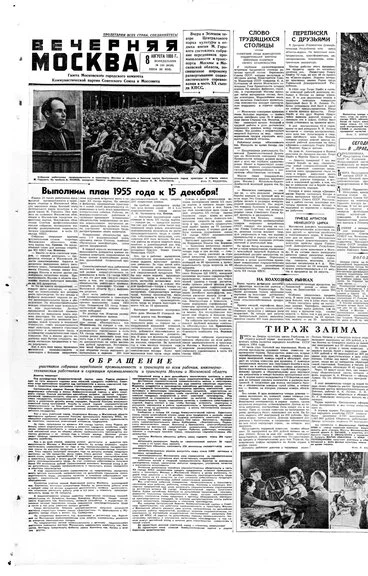 «Вечерняя Москва № 186 (9626), 8 августа 1955 г.»