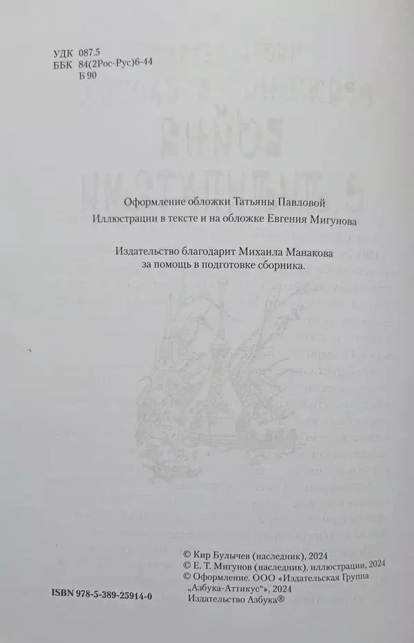 Примечание: Оформление обложки Татьяны Павловой. Издательство благодарит Михаила Манакова за помощь в подготовке сборника. Подписано в печать 10.06.2024, заказ 3640/24.