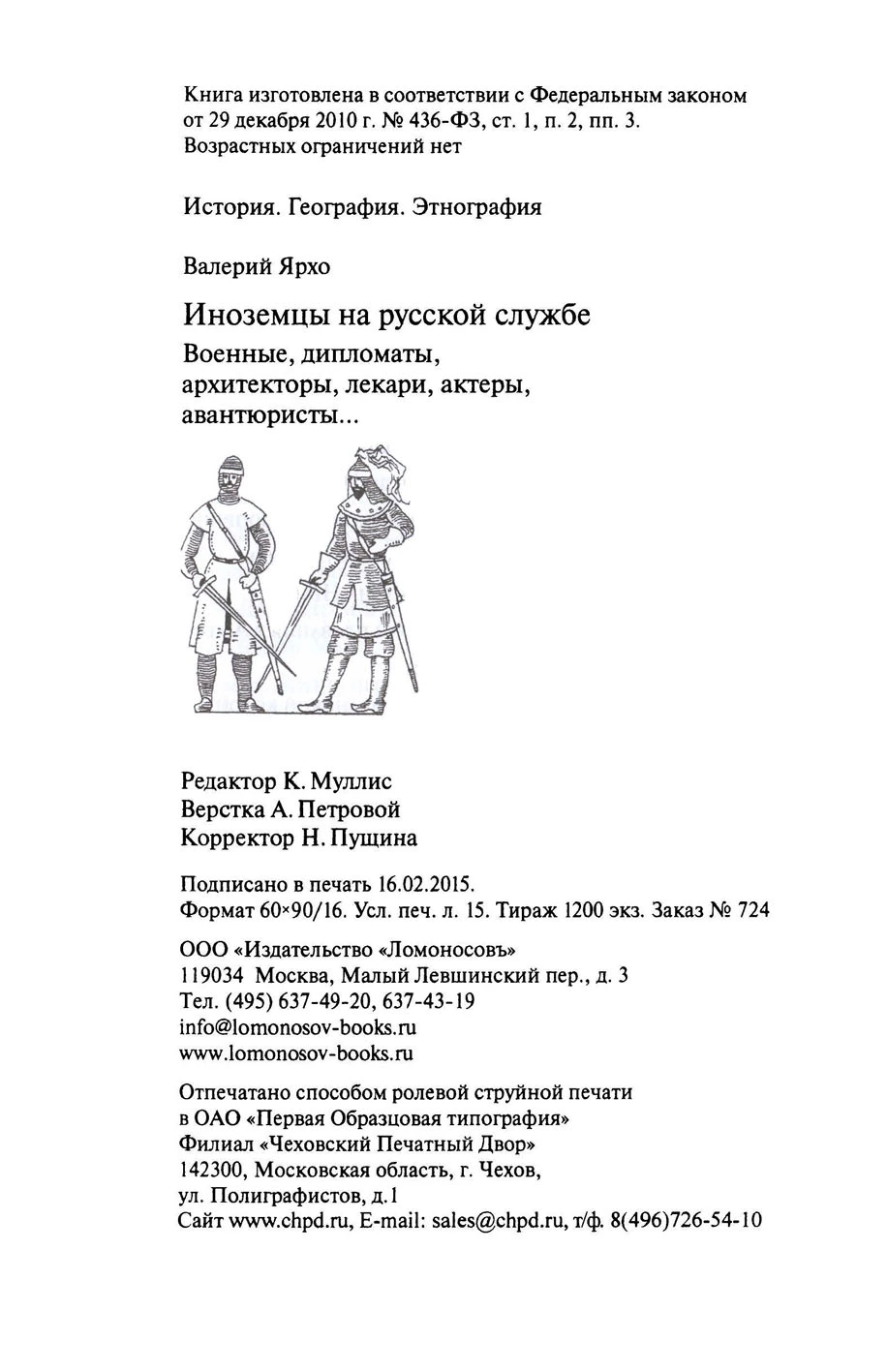 Валерий Ярхо «Иноземцы на русской службе. Военные, дипломаты, архитекторы, лекари, актеры, авантюристы...»