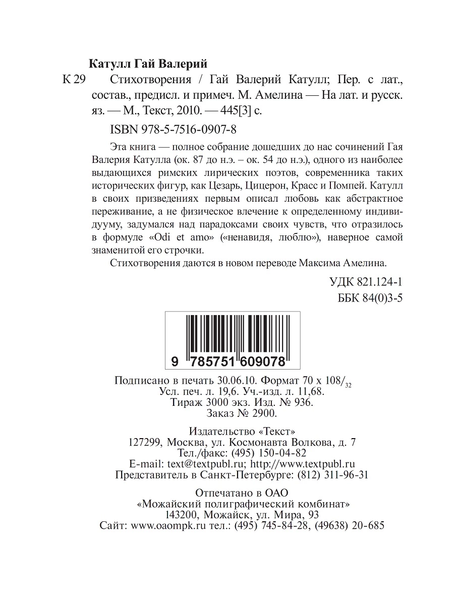 - Гай Валерий Катулл. 41. Отовсюду, одиннадцатисложки… (стихотворение, перевод М. Амелина), стр. 125