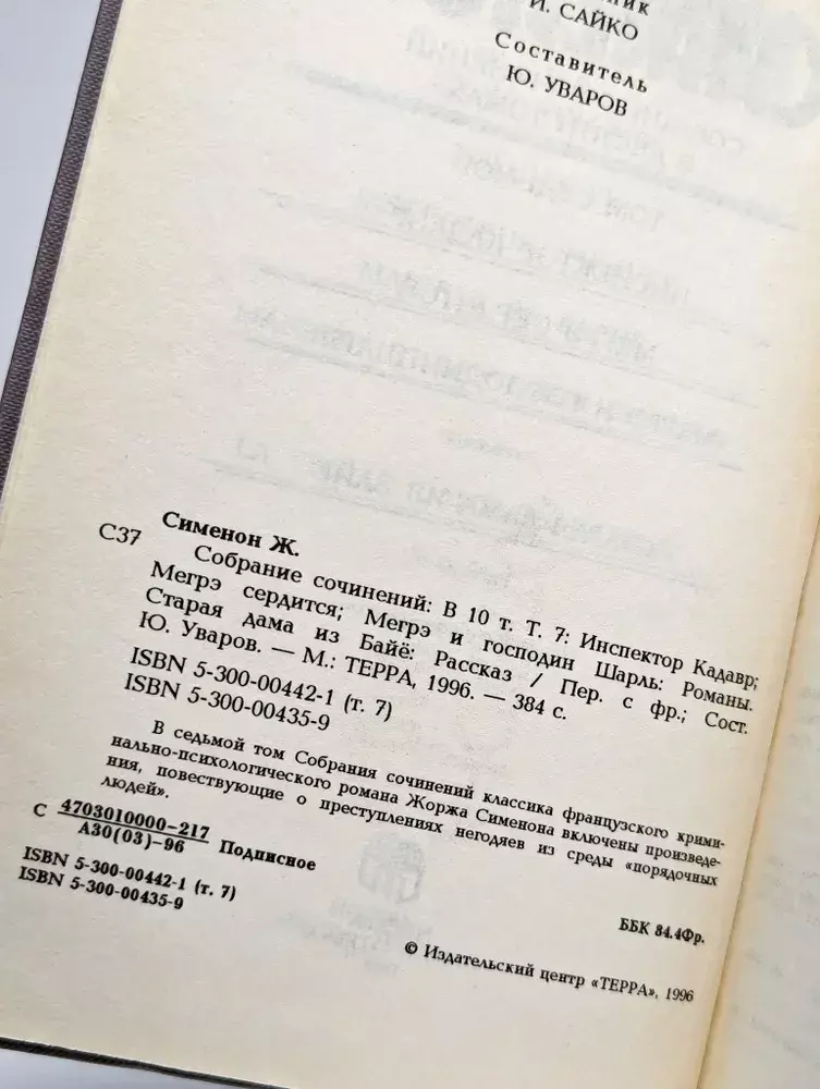 Жорж Сименон «Том 7. Инспектор Кадавр. Мегрэ сердится. Мегрэ и господин Шарль. Старая дама из Байе»