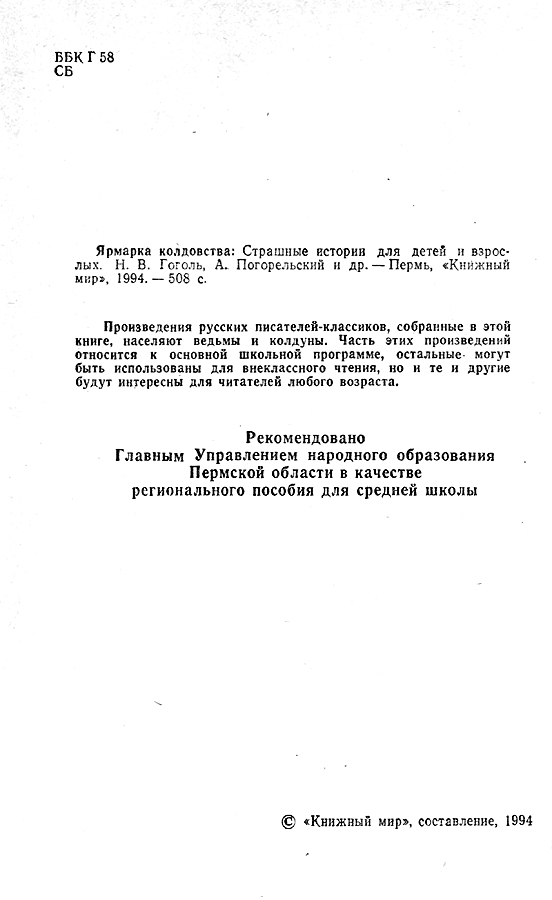 - Н. Гоголь. Заколдованное место (быль, рассказанная дьячком ***ской церкви), стр. 199-206