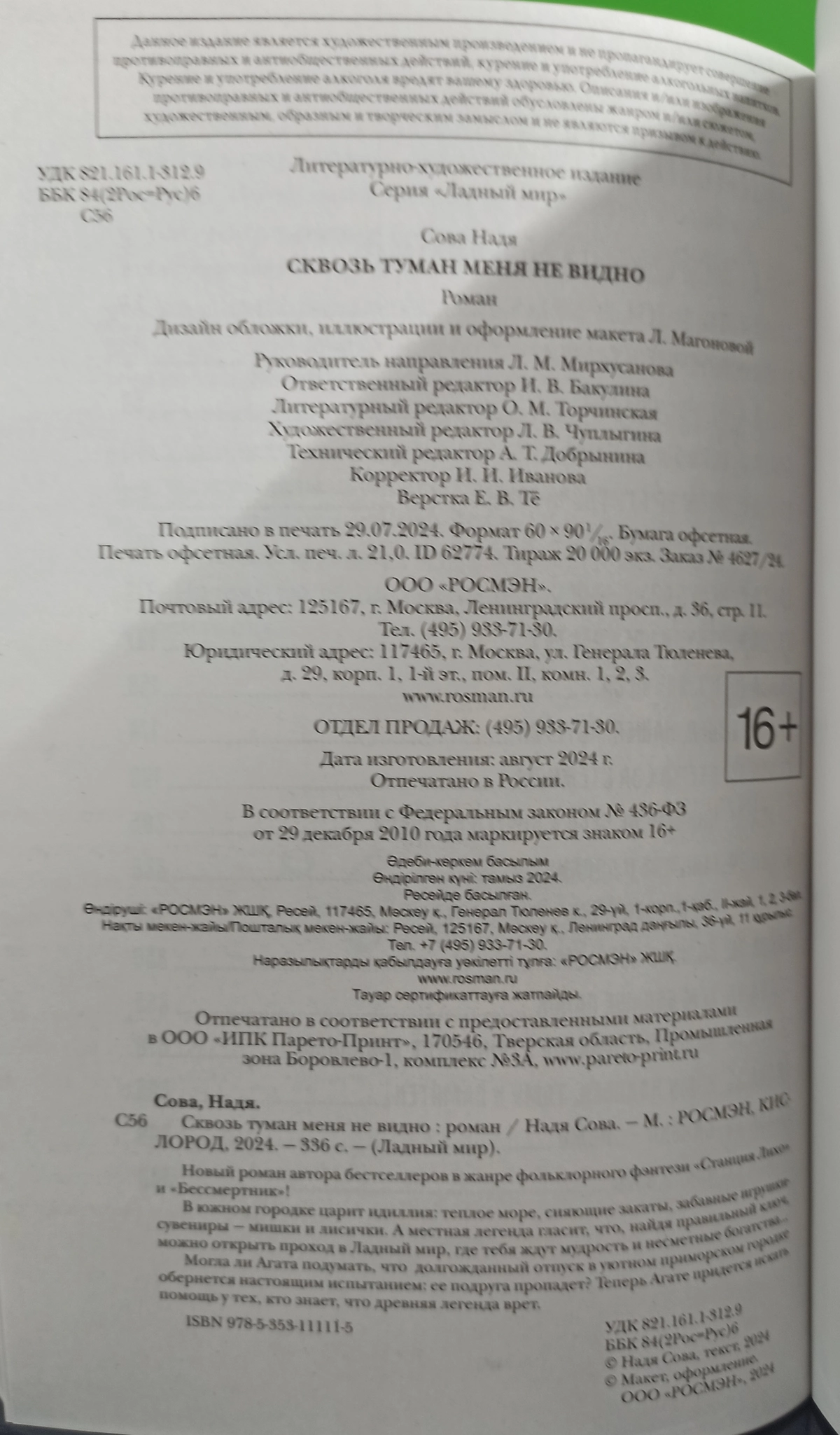 Примечание: Литературный редактор О. М. Торчинская в издании указана с ошибкой. Должно быть М.О. Торчинская На контртитуле размещёны слова припева песни «Туман» рок-группы из Екатеринбурга «Смысловые галлюцинации». Подписано в печать 29.07.2024. Заказ № 4627/24.