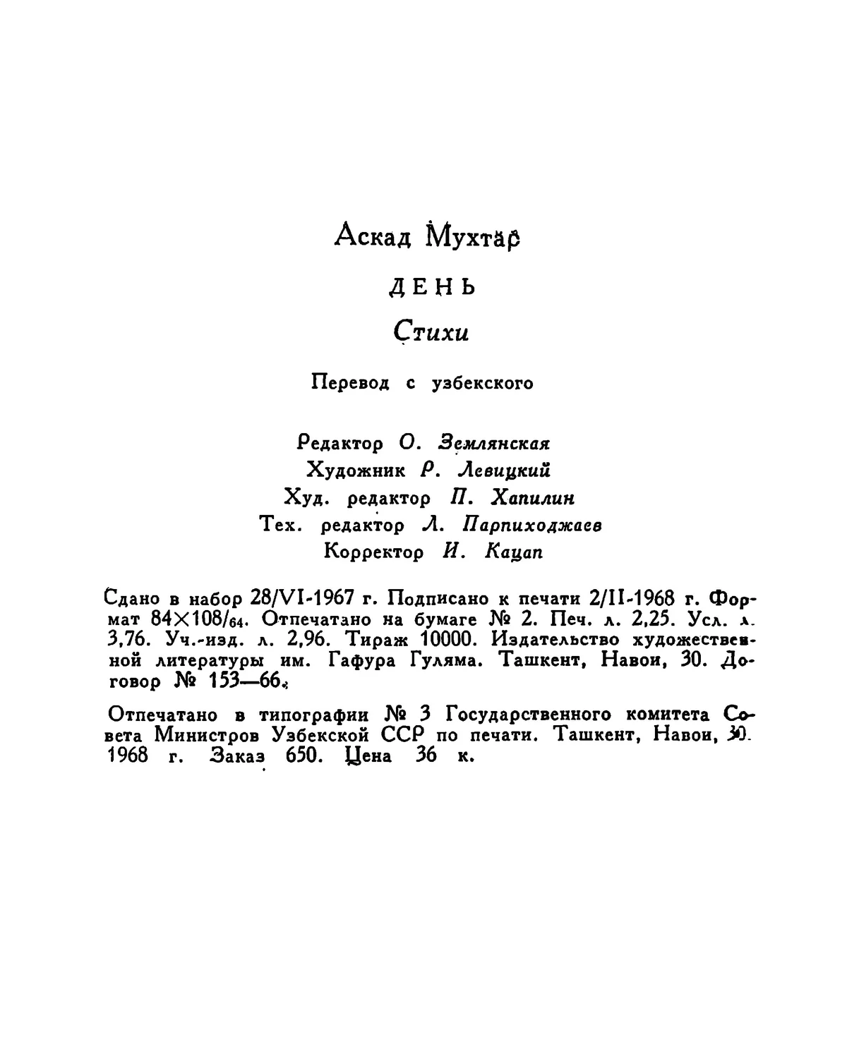 - Аскад Мухтар. День (стихотворение, перевод А. Наумова), стр. 3-5