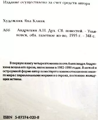 Примечание: На 2-й стр. указано: Издание осуществлено за счёт средств автора. В макете карточки указано: 348 с. — по факту 352. Издано в авторской редакции. Подписано в печать 1.12.94. Зак. 1832.