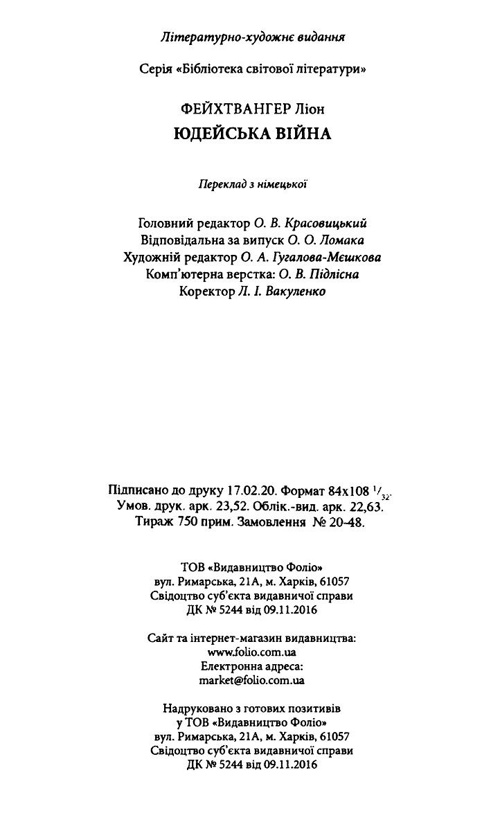 Примечание: Картина Франческо Айеца «Руйнування Єрусалимського храму». Оформление О. Гугалової-Мєшкової. Подписано к печати 17.02.2020. |