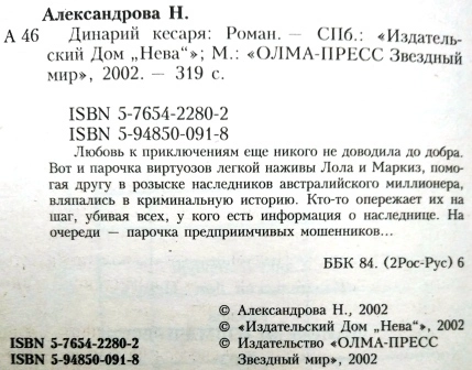 Примечание: В макете карточки указано 319 с. — по факту 320 стр. Дизайн Е.В. Богдановой. Подписано в печать 15.07.2002. Заказ № 184.