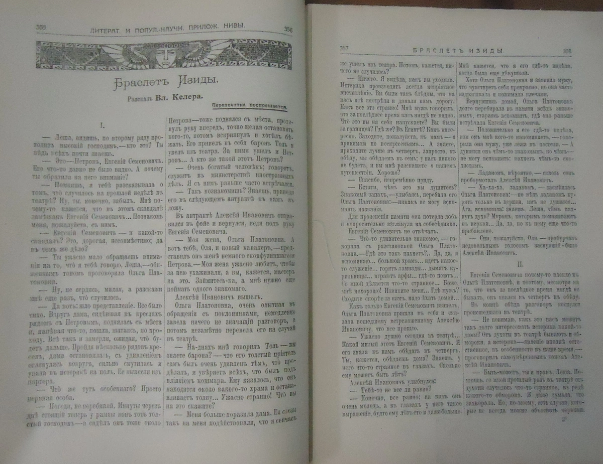 - Вл. Келер. Браслет Изиды (начало рассказа), стб. 355-372
