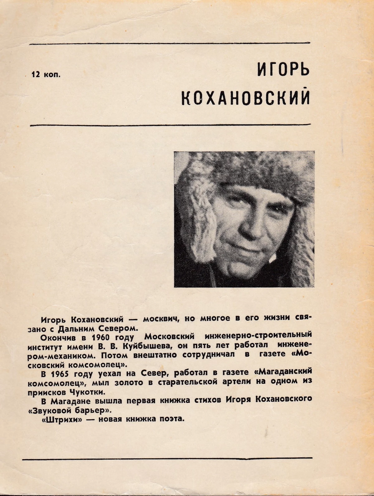 - Игорь Кохановский. Москва — Магадан (стихотворение), стр. 4-5