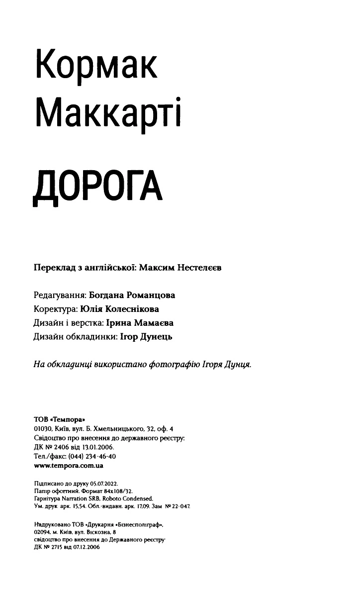 Примечание: Дизайн обложки Ігоря Дунця. Подписано к печати 05.07.2022.
