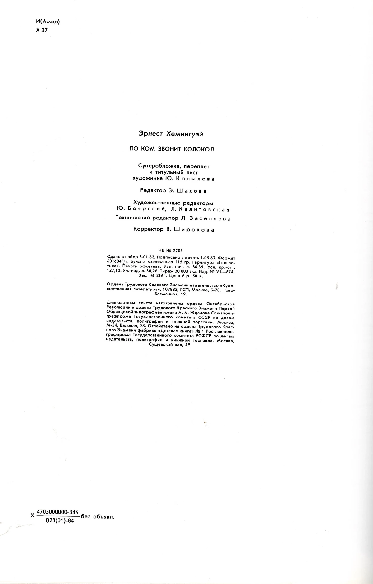 Примечание: Подписано в печать 1.03.83. Заказ №2164. 1984 год указан по титулу.