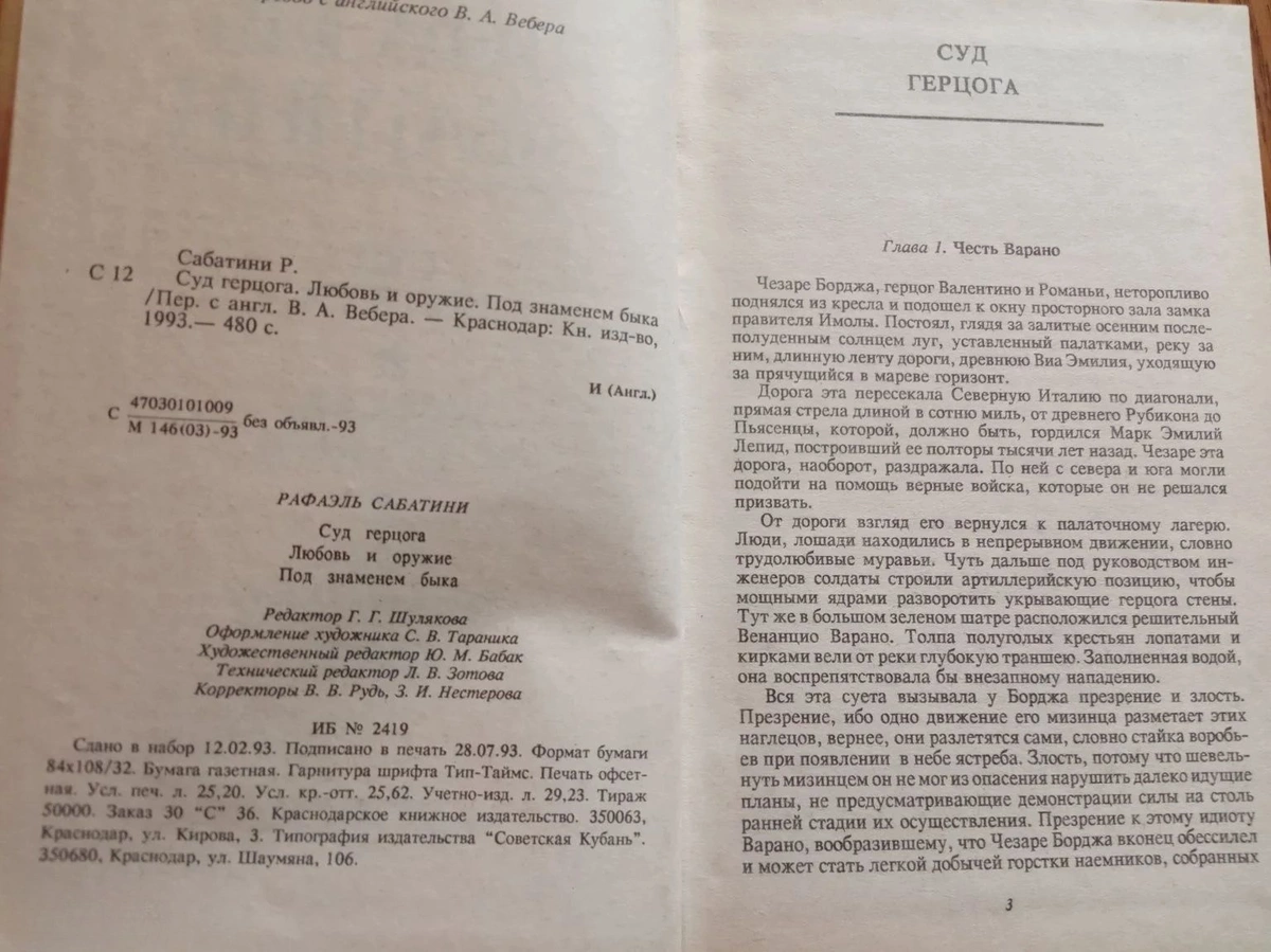 Рафаэль Сабатини «Суд герцога. Любовь и оружие. Под знаменем быка»