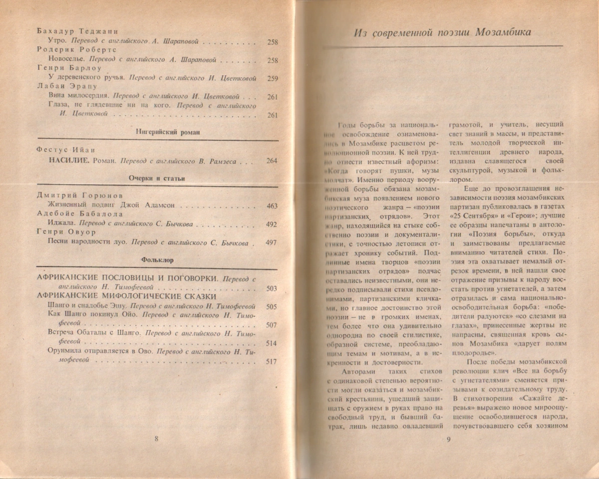 Произведения африканских писателей и советских журналистов об Африке.