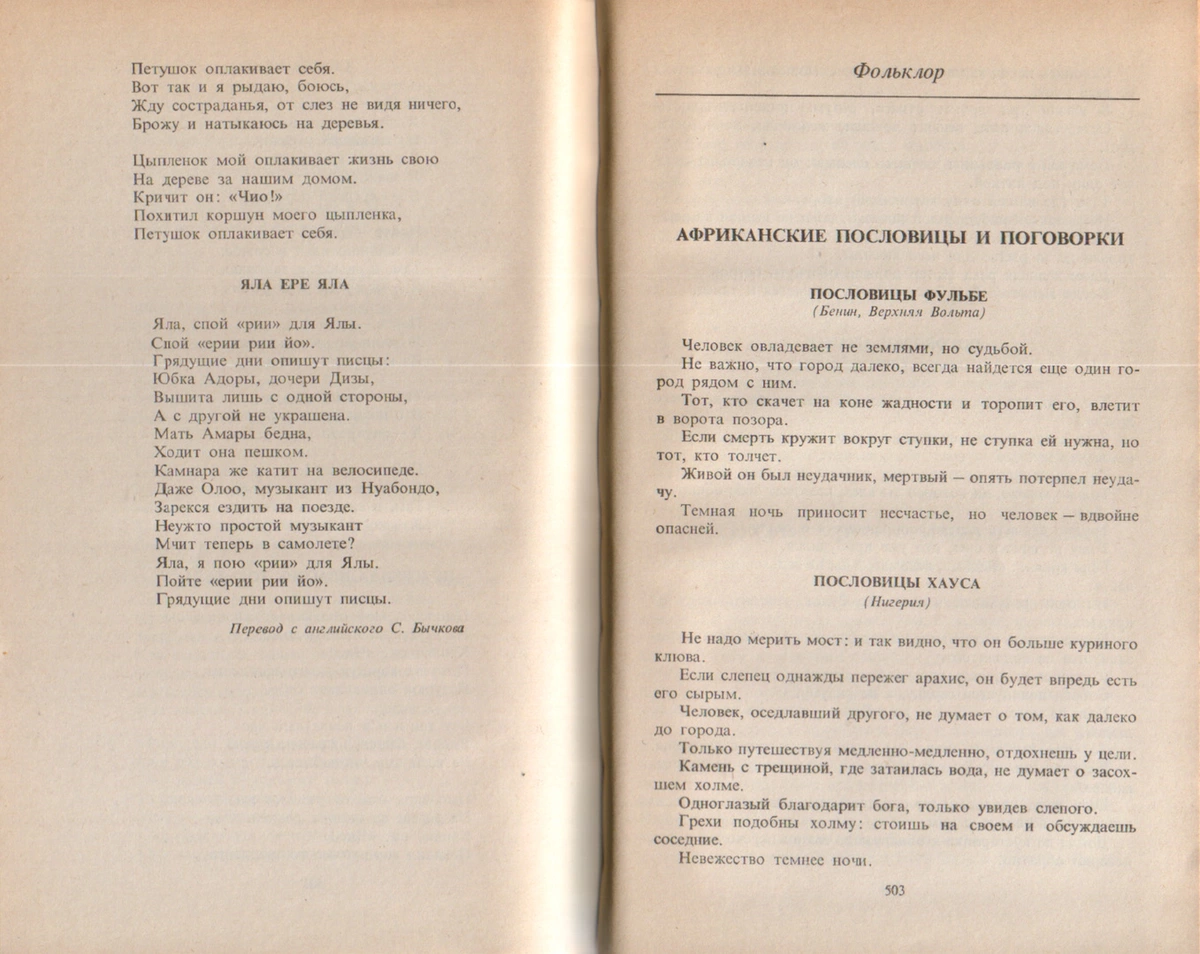 - Пословицы хауса (Нигерия) (перевод Н. Тимофеевой), стр. 503-504