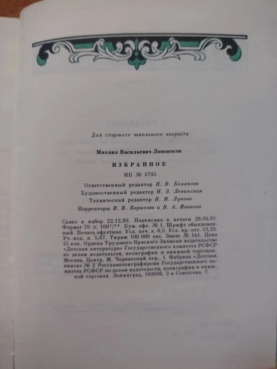 - Михаил Ломоносов. «Послушайте, прошу, что старому случилось…» (стихотворение), стр. 118