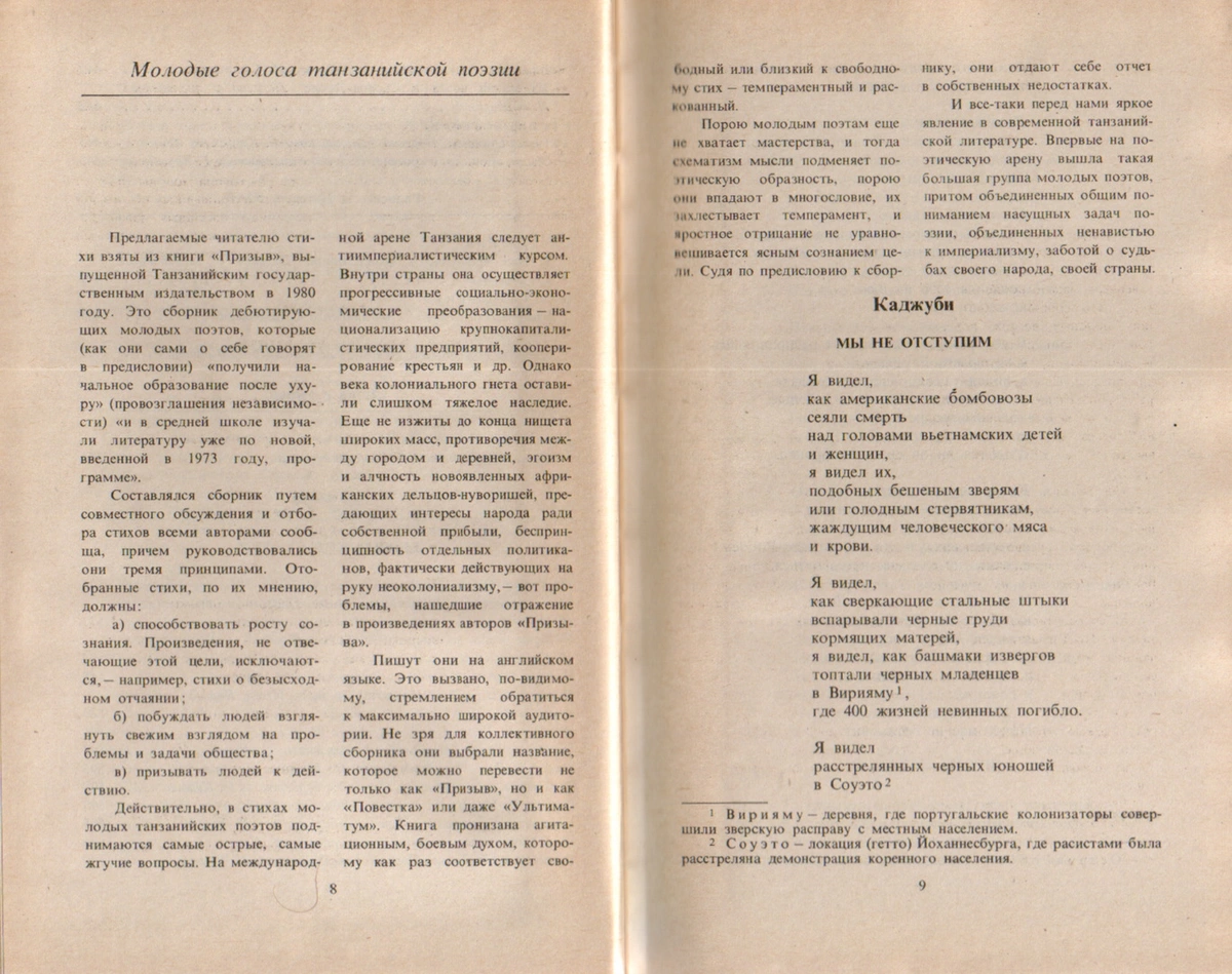 - Из жизни поэта в Сьерра-Леоне (стихотворение, перевод Н. Сидориной), стр. 442-443