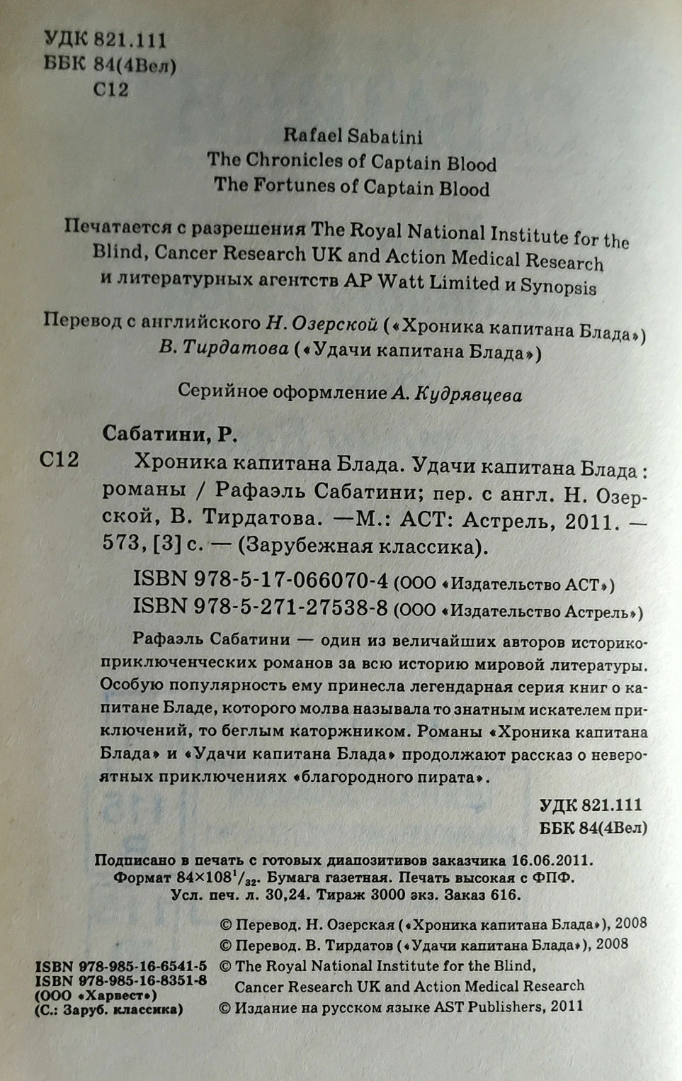 Доп. тираж 2011 года — 3000 экз. ISBN: 978-5-17-066070-4, 978-5-271-27538-8, 978-985-16-8351-8, 978-985-16-6541-5.