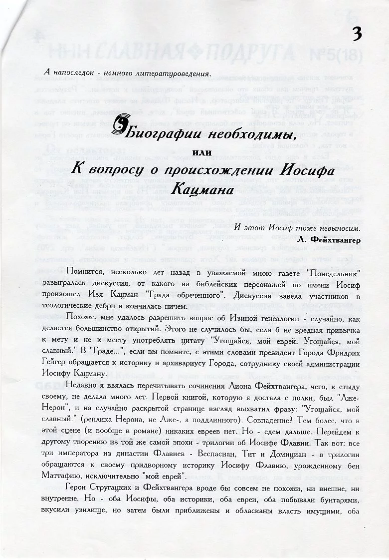 - Бат-Адар. Биографии необходимы, или К вопросу о происхождении Иосифа Кацмана (статья), стр. 3-4