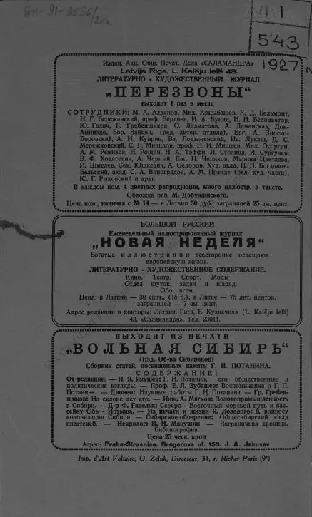 «Воля России, № II, 1927»