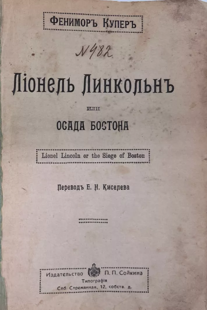 Фениморъ Куперъ «Лiонель Линкольнъ»