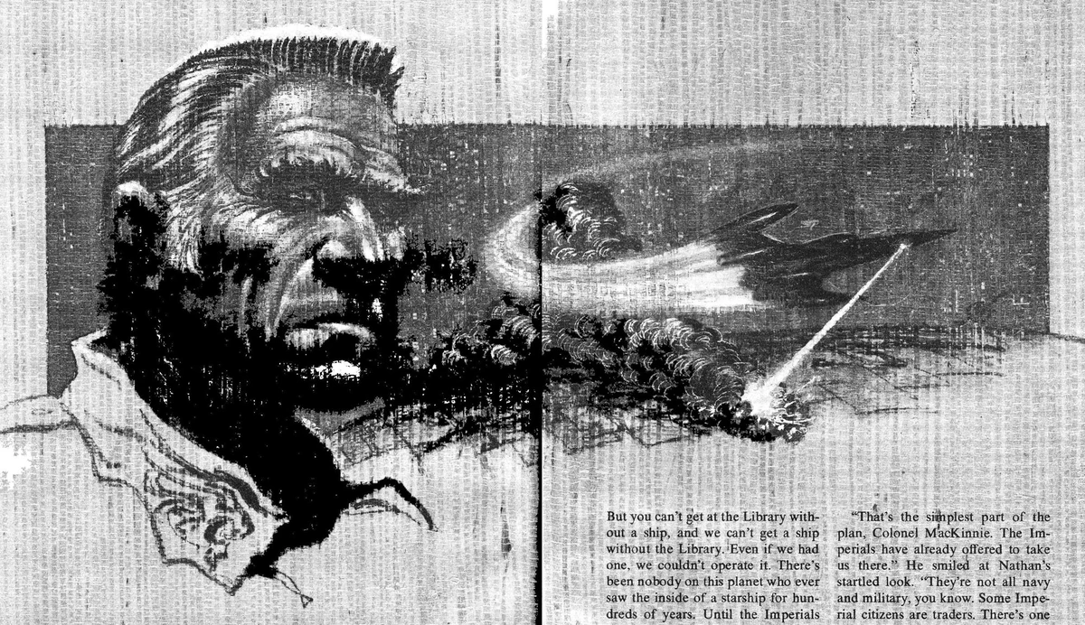 - Jerry Pournelle. A Spaceship for the King (начало романа, иллюстрации Ф. К. Фриса), p. 8-49