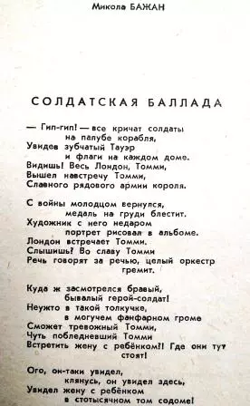 - Микола Бажан. Солдатская баллада (стихотворение, перевод Н. Заболоцкого), стр. 13-19