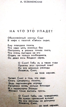 - Лев Ошанин. Руки прочь, предатели мира! (стихотворение), стр. 61-62