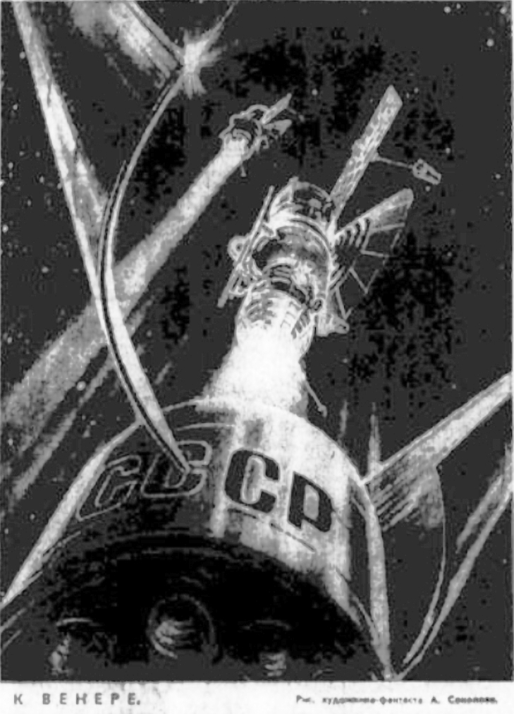 - Снова к Венере! (сообщение ТАСС, рисунок художника-фантаста А. Соколова «К Венере»), стр. 1