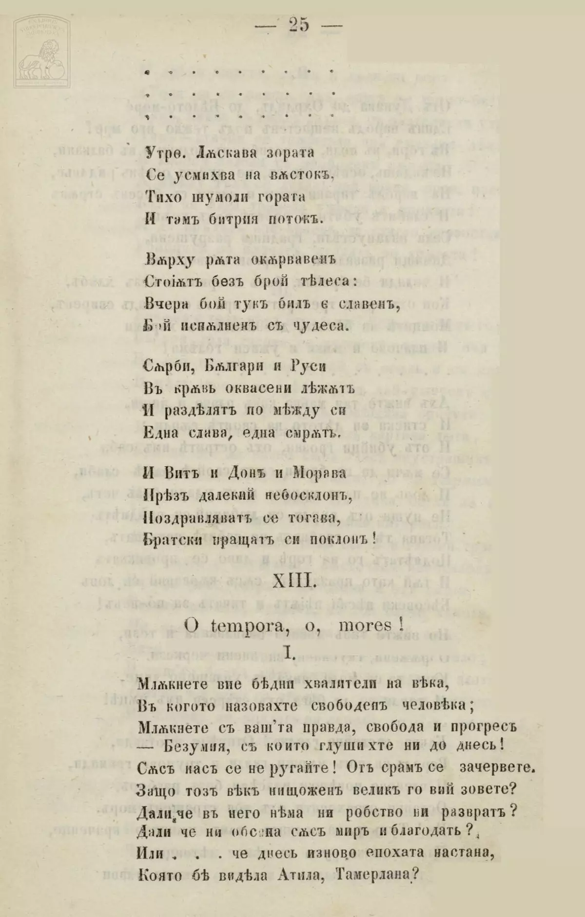 - И. Вазовъ. O tempora, o, mores! (стихотворение), стр. 25-29