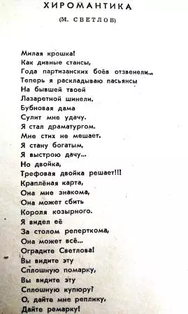 - Сергей Васильев. Хиромантика (М. Светлов) (стихотворение), стр. 28