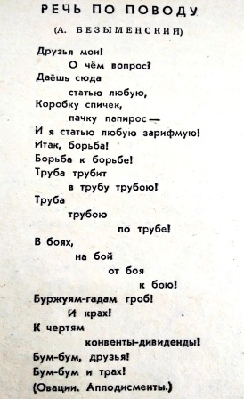 - Сергей Васильев. Речь по поводу (А. Безыменский) (стихотворение), стр. 6