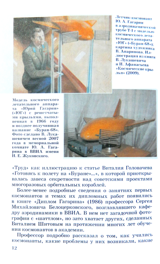 - Шаттл конструктора Гагарина (статья, публикацию подготовил С. Славин, репродукция картины В. Апаринова, фото), стр. 11-16