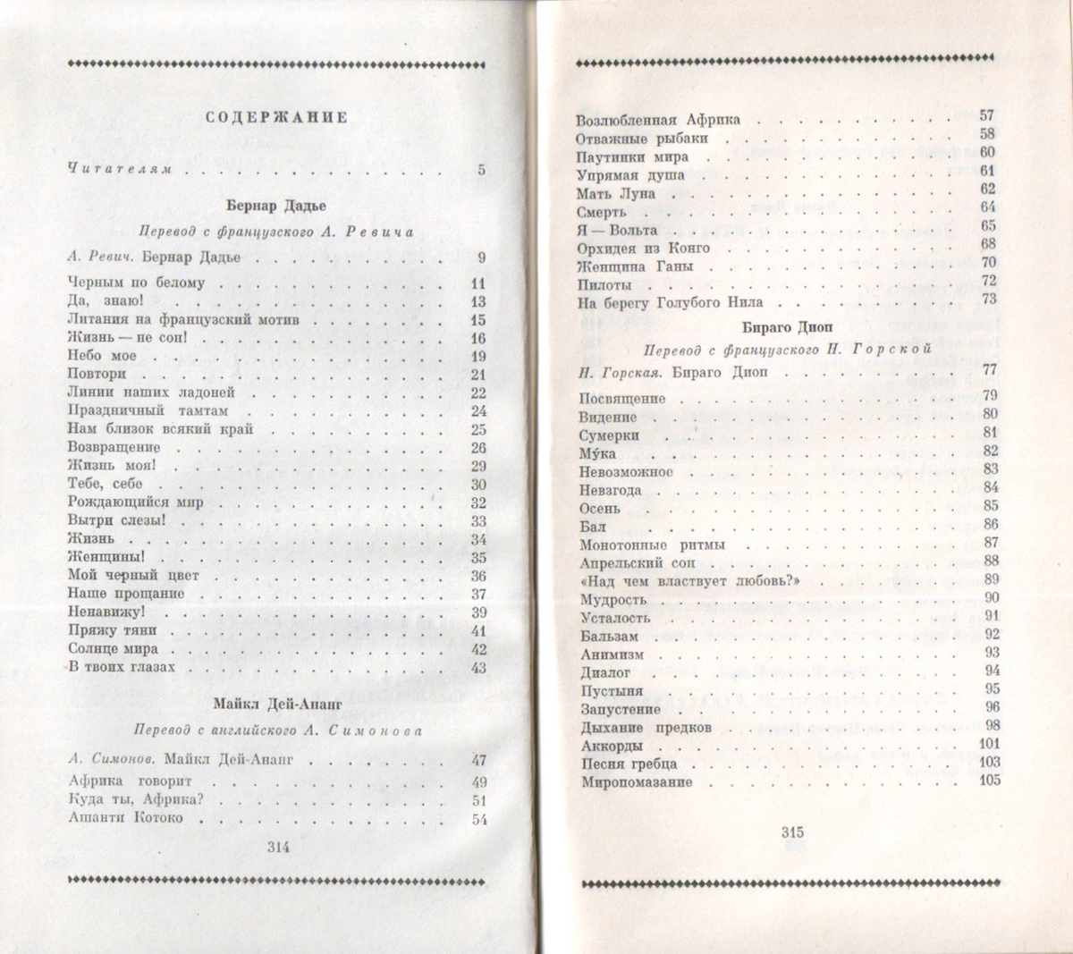 - М. Ваксмахер. «Стихи сенегальца Давида Диопа...» (заметка), стр. 115