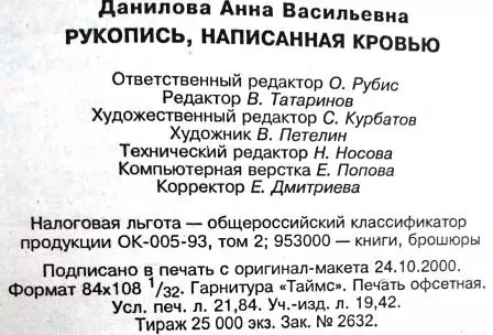 Примечание: Подписано в печать 24.10.2000. Зак. № 2632.