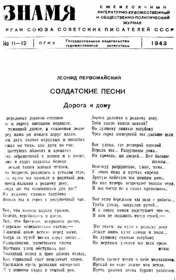 - Леонид Первомайский. Дорога к дому (стихотворение, перевод М. Зенкевича), стр. 1-2