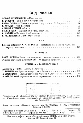 - Константин Симонов. Дни и ночи (продолжение, глава Х), стр. 6-63