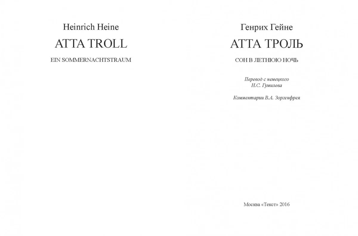 Генрих Гейне / Heinrich Heine «Атта Троль / Atta Troll»