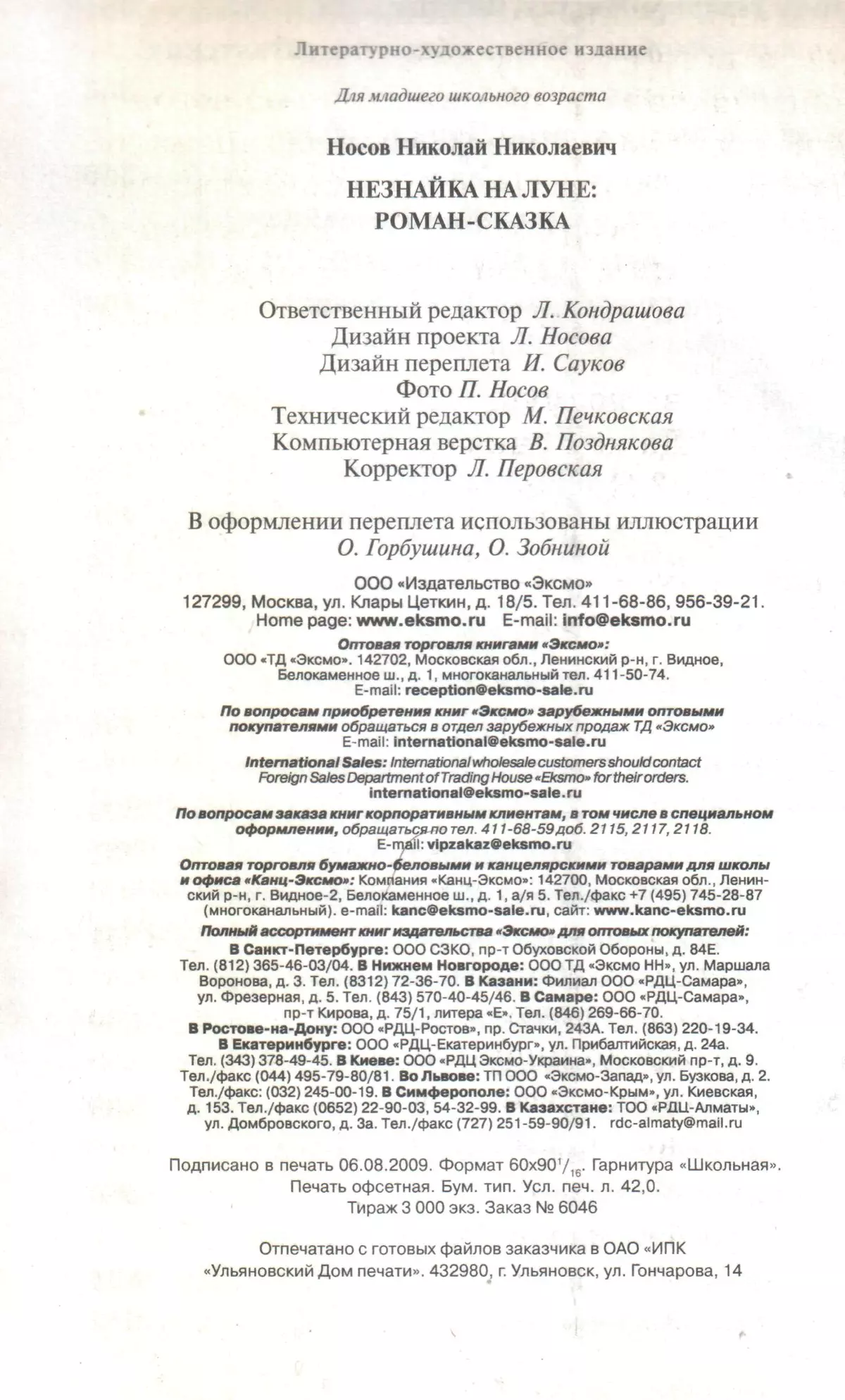 Примечание: Подписано в печать 06.08.2009. Заказ № 6046. В оформлении переплета использованы иллюстрации О. Горбушина, О. Зобниной.