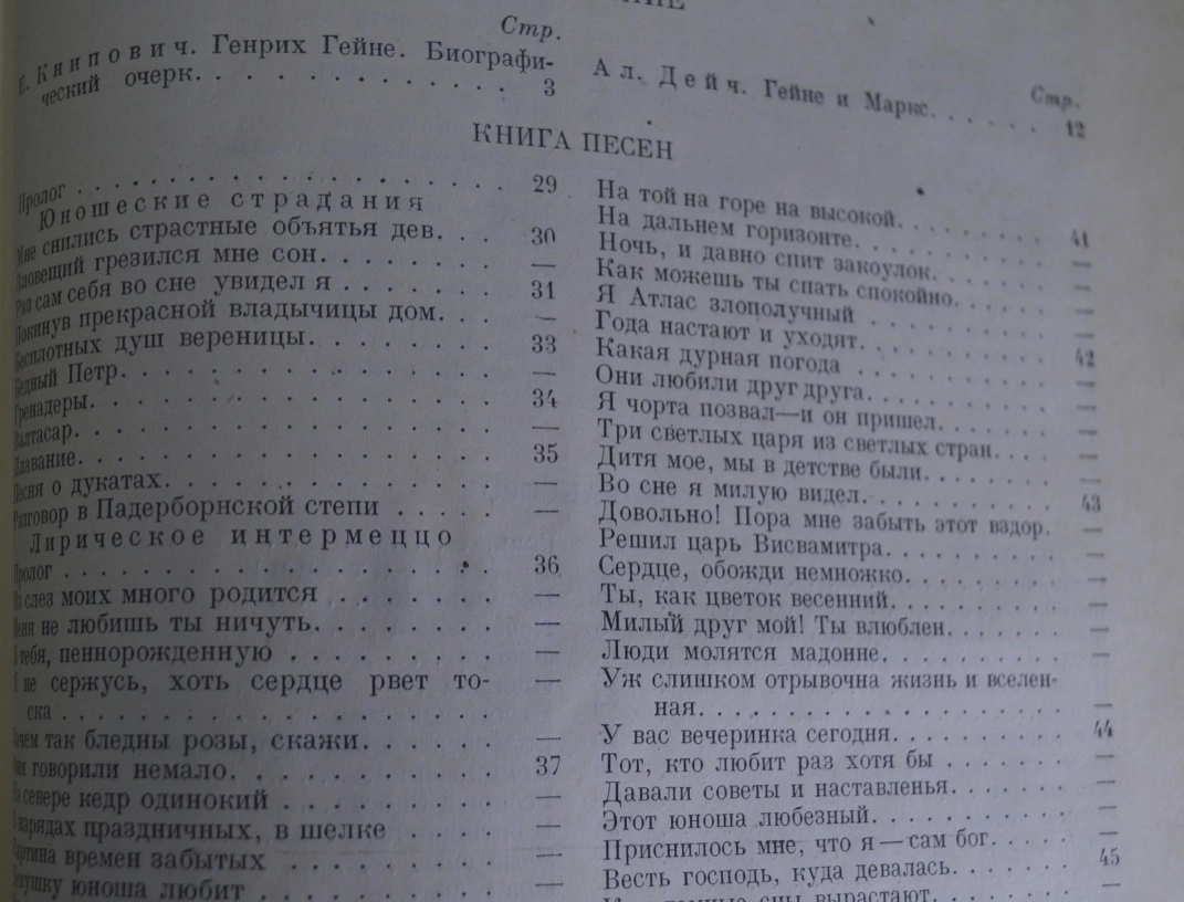 [!] содержание и порядок произведений может не соответствовать действительности Примечание: Содержание: Книга песен. Новые стихи. Современные стихи. Романсеро. Стихи 1853-1854 годов. Поэмы. Объяснительные тексты. Под общей редакцией Александра Дейча. Формат: 72х110/16. Оформление А.П. Радищева. Подписано в печать 25.04.1934. |