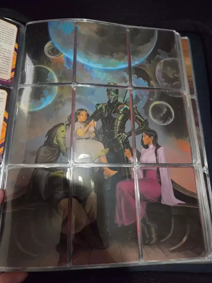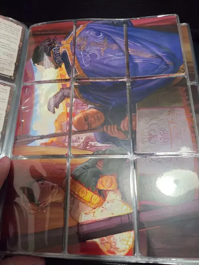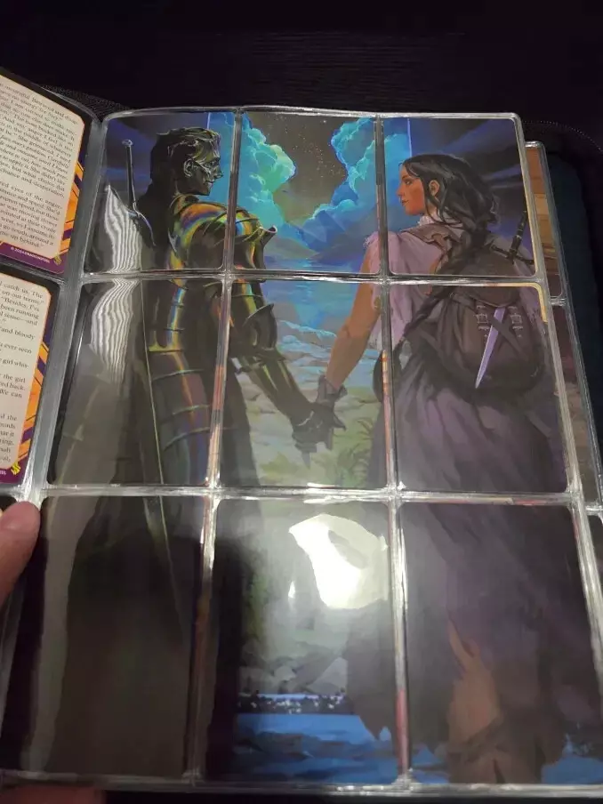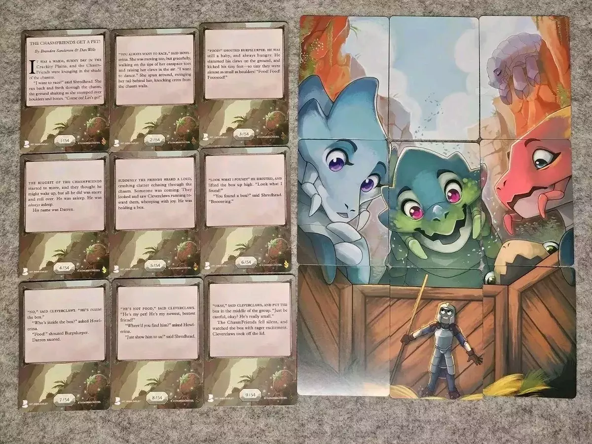 Примечание: Наборы коллекционных карточек продавались на конвенте Dragonsteel Nexus 2024 паками по 15 штук. Всего в коллекционных карточках было напечатано 3 рассказа (каждый на 54 карточках), дополнительно было 9 карточек с персонажами цикла «Архив Буресвета». |