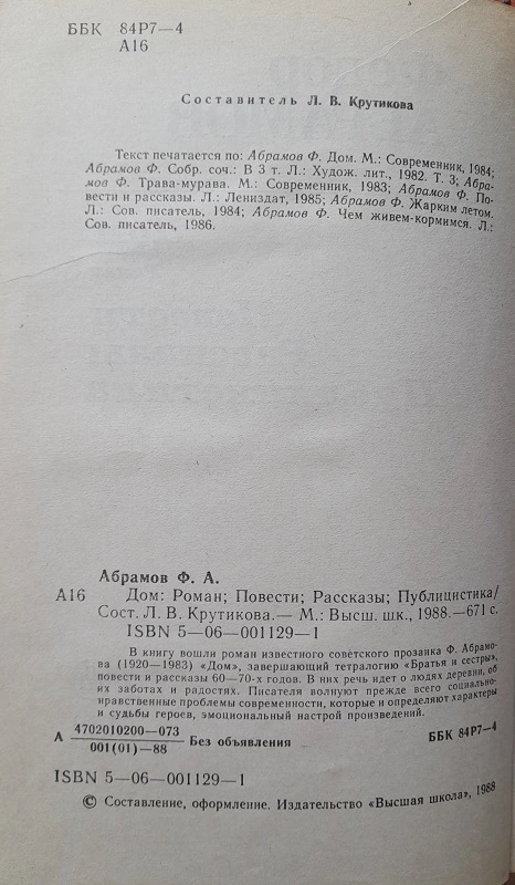 - Федор Абрамов. Дом (роман), стр. 9-245