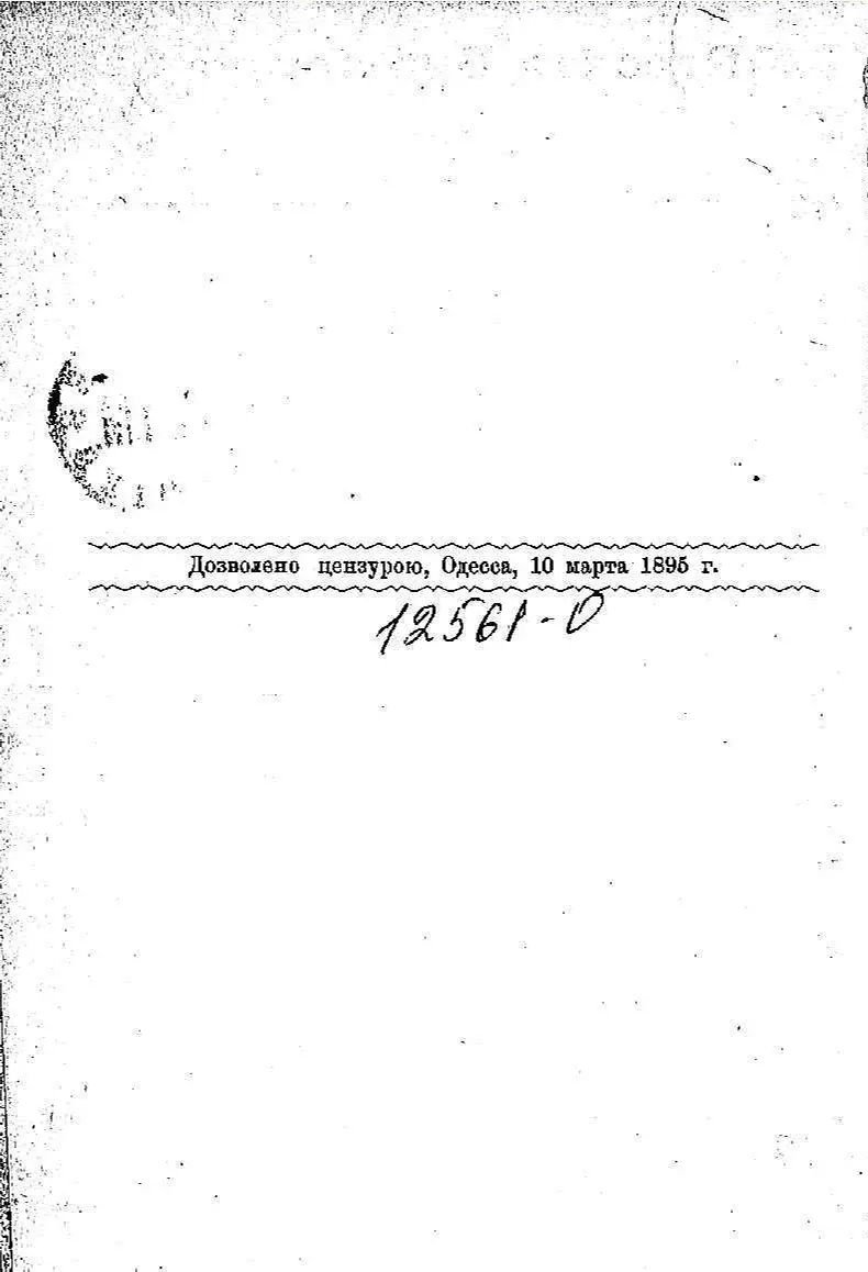 Примечание: Дозволено цензурою. Одесса, 10 марта 1895 года. СПб.: Типо-Литографія А. Рабиновича и Ц. Крайза. |