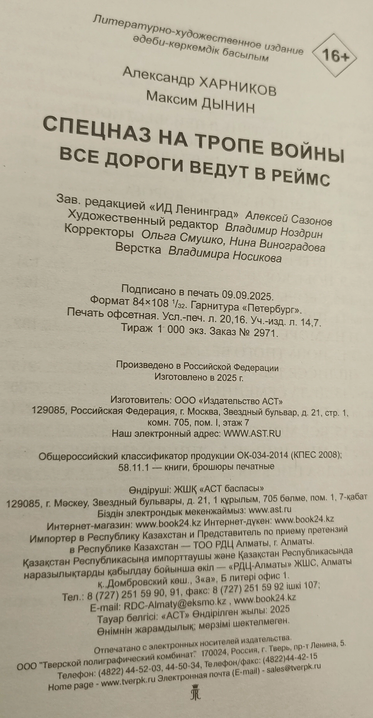 Примечание: Подписано в печать 09.09.2025. Заказ № 2971.