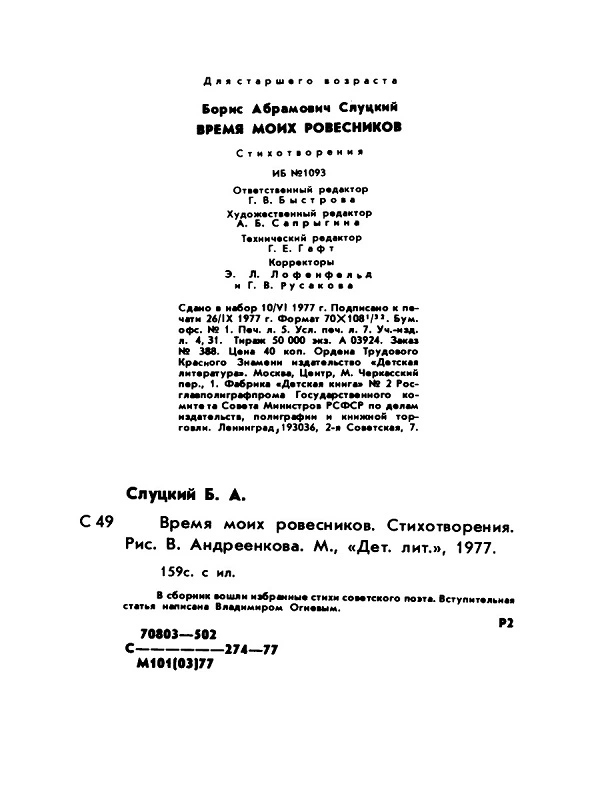 - Борис Слуцкий. Школа для взрослых (стихотворение), стр. 100-101