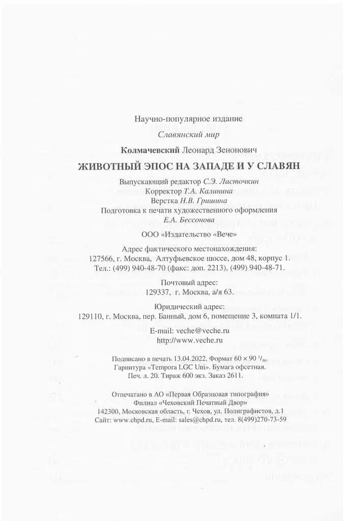 - Леонард Колмачевский. Животный эпос на западе и у славян (монография), стр. 5-317