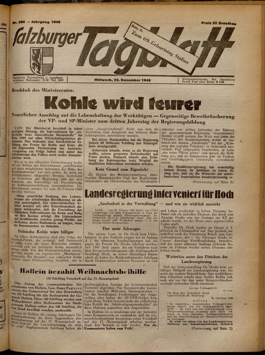 «Salzburger Tagblatt № 295, 22 Dezember 1948»