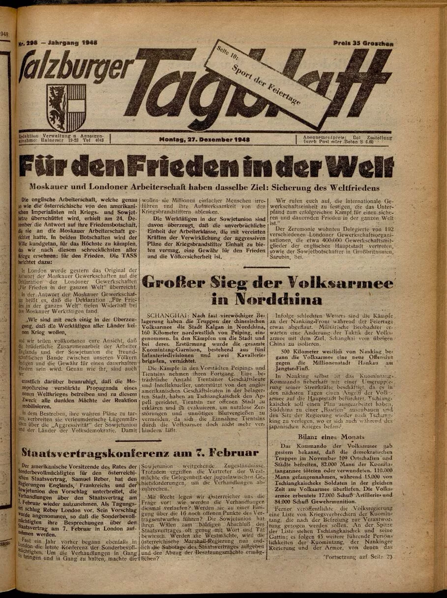 «Salzburger Tagblatt № 298, 27 Dezember 1948»