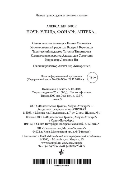 - Александр Блок. «Ночь — как ночь, и улица пустынна...» (стихотворение), стр. 57