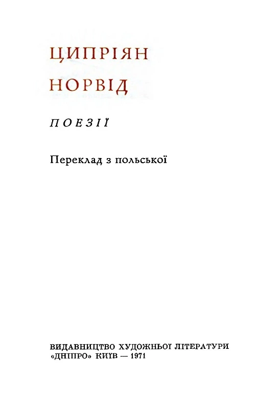 - Ципріян Норвід. Знов легенда (стихотворение, перевод М. Бажана), стр. 58-62